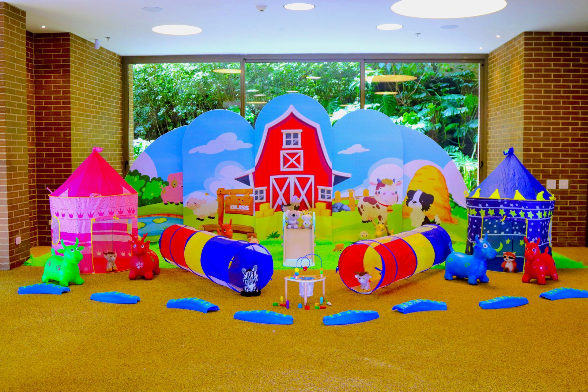 La combinación ideal de juego, movimiento y recuerdos. Los niños disfrutan de dos zonas de entretenimiento mientras el backdrop crea el espacio perfecto para fotos únicas del evento.