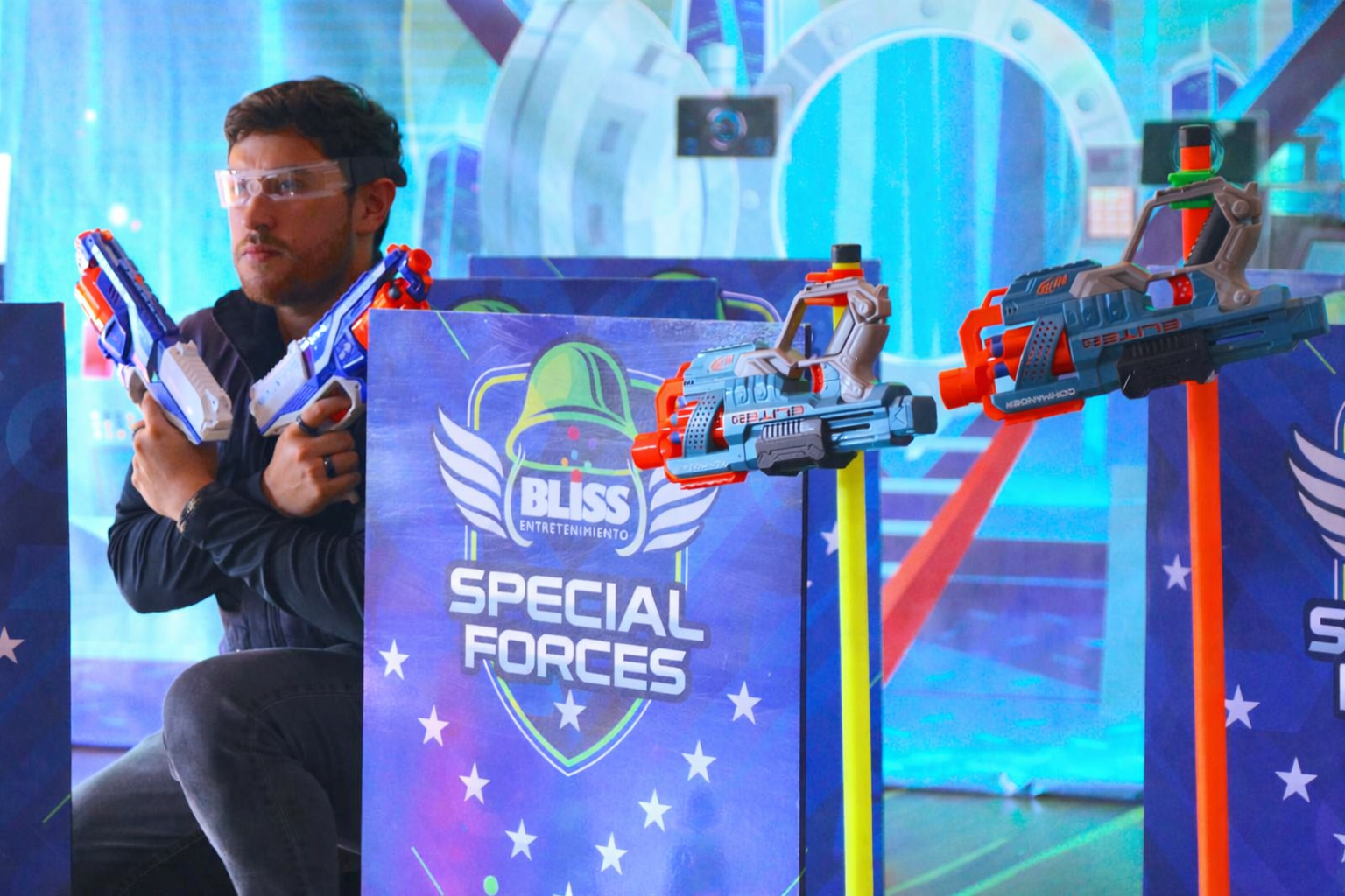 "¿Por qué elegir uno si puedes tener la batalla total? Une el poder del Láser Tag con la adrenalina de Nerf".